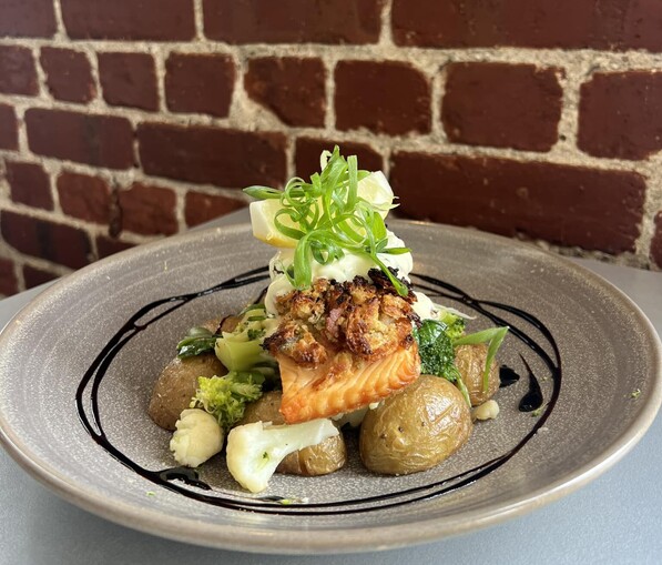 Haloumi served on fresh iceberg lettuce, roasted capsicum, pumpkin, aioli and caramelised onions.