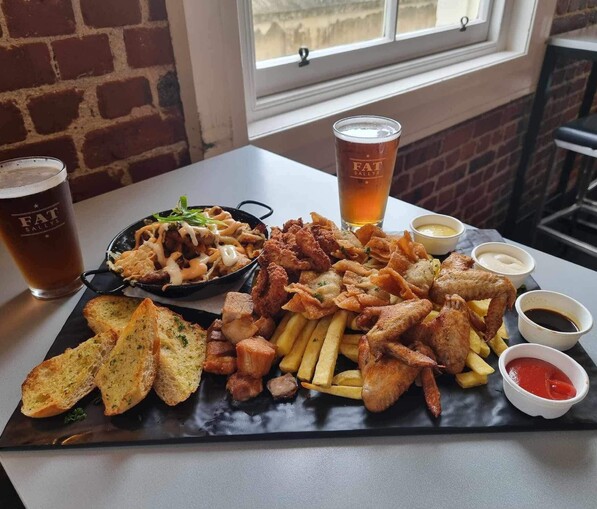 Fat Sally’s favourites on one big platter! Includes crispy chicken, pork bites, chips, sals sliders, wontons, fish bites and calamari.